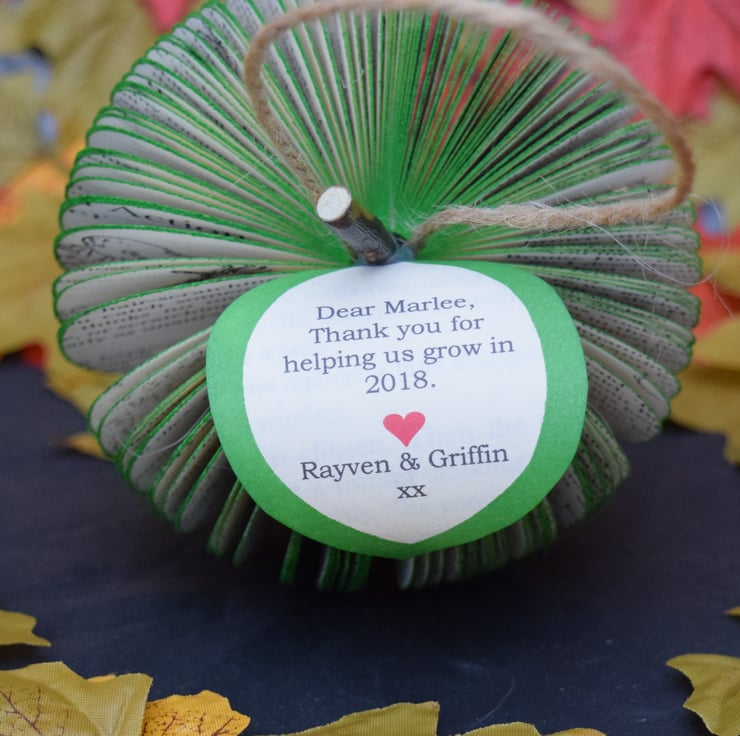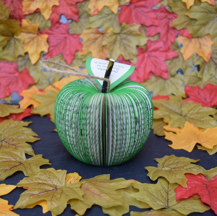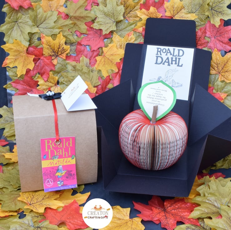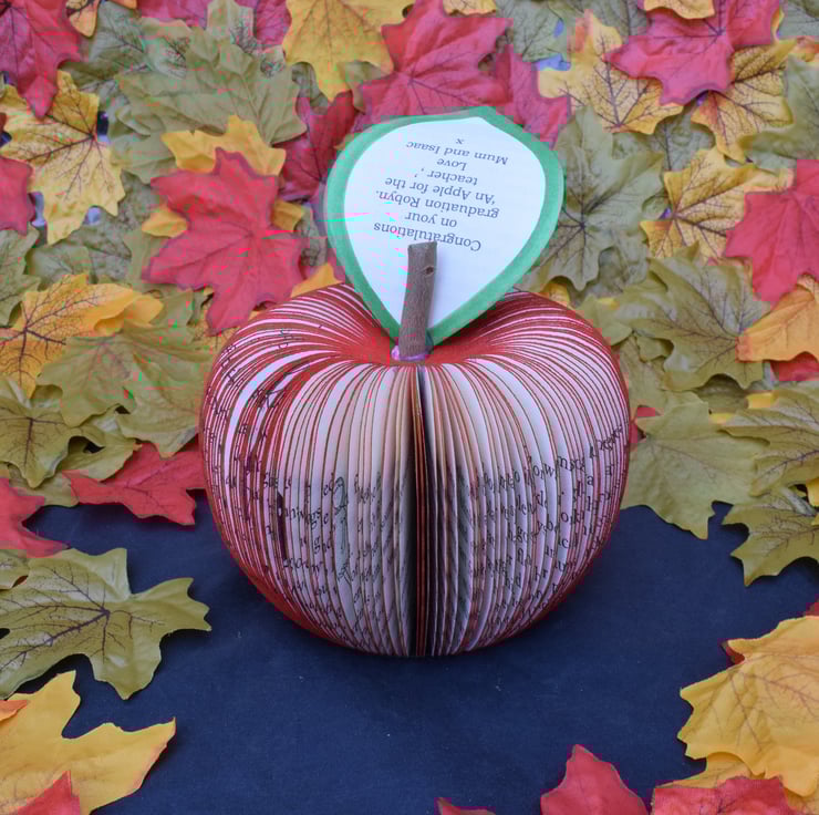 Beautiful Book Apple made from one of the Roald Dahl book and a leaf for you to personalise with your own message.