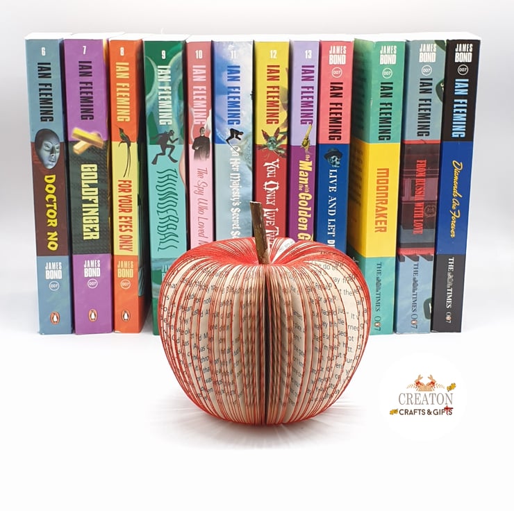 A stunning Book Apple made from an Ian Fleming James Bond book. (Each apple will vary depending on the Book used)