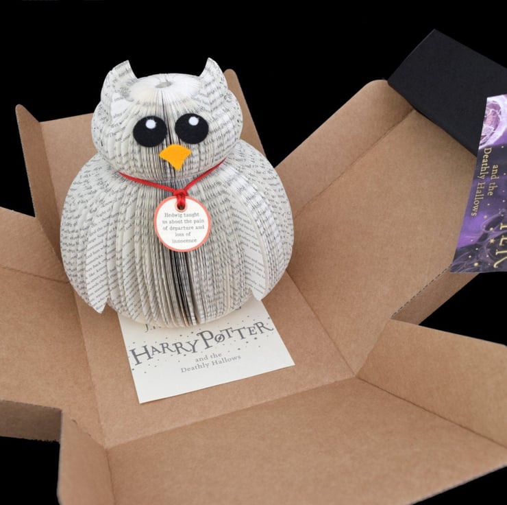 A Beautiful Personalised Book Owl made from a one of the Harry Potter books.