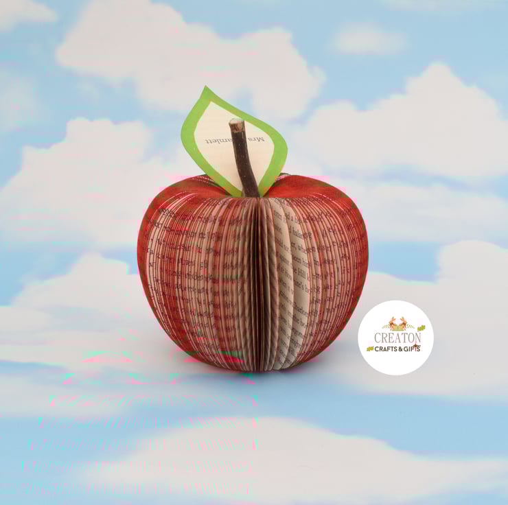 A Beautiful Book Apple made from a one of the Lemony Snicket books A series of Unfortunate Events with a leaf that can be personalised with your wording.