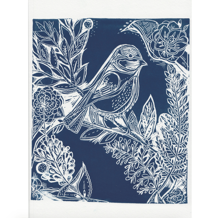 Original art block print on fine white card.