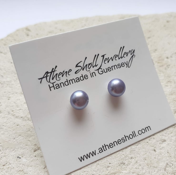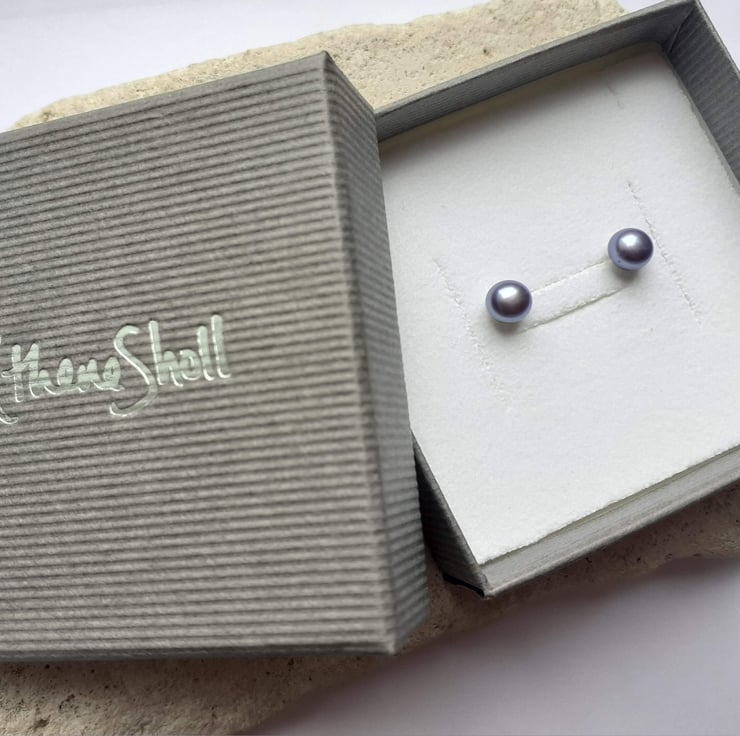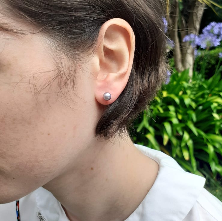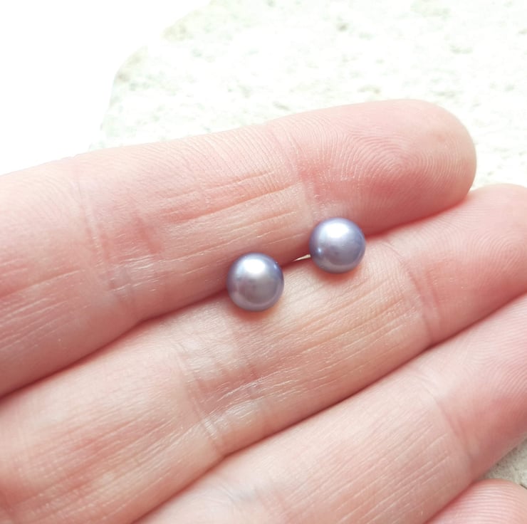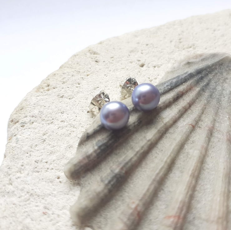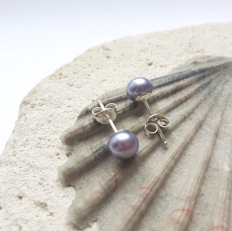 6-6.5mm Peacock Lilac Grey Pearl Stud Earrings with Sterling Silver Posts and Butterflies.