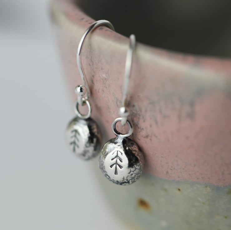 These earrings have been made using silver off cuts, which I melt down and turn into a silver 'pebble'.