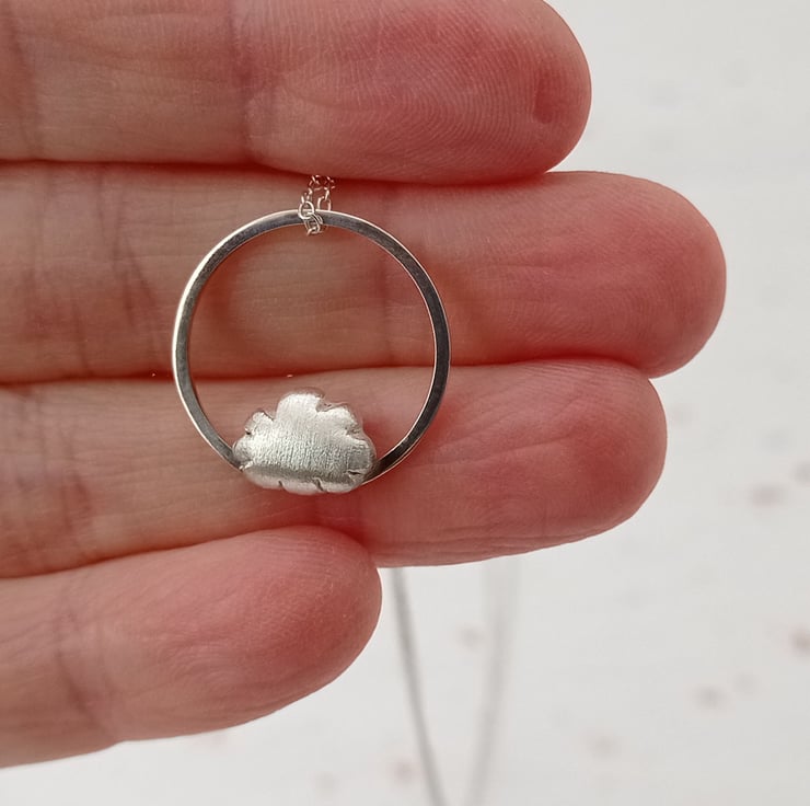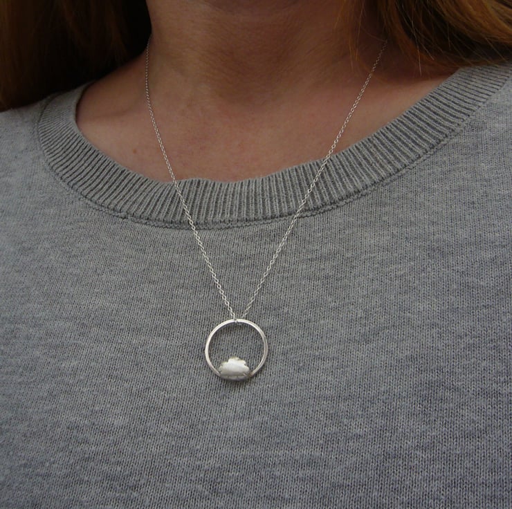 I was inspired to make a range of jewellery based on my love of the ocean and the sky. This necklace shows a 3d cloud on a small ring.