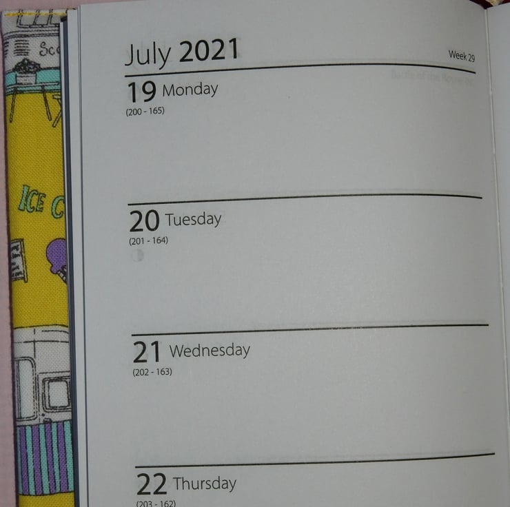 This is a bright and cheerful fabric covered diary, think of summer and ice creams everyday, when you us it. It is A6 sized and is week to view style. The cover is removable and refills are easily available, for the following year. The cover is lined and interfaced and it would make a great gift.