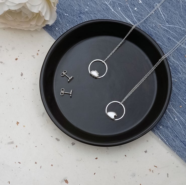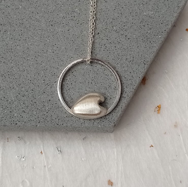 I was inspired to make a range of jewellery based on my love of the ocean and the sky. This necklace shows a 3d wave on a small ring.