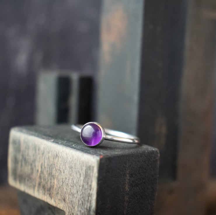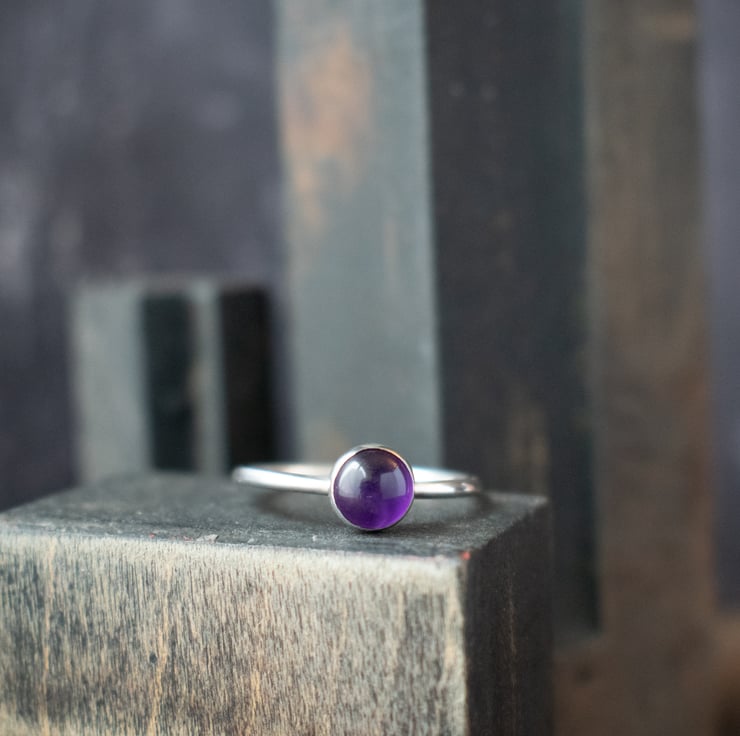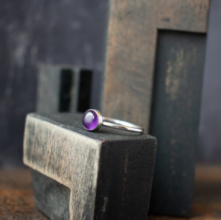 A simple yet beautiful stacking ring featuring a 6mm Indian Amethyst gemstone. As a birthstone for February, it makes a perfect birthday gift, or perhaps just to add to your stacking ring collection.