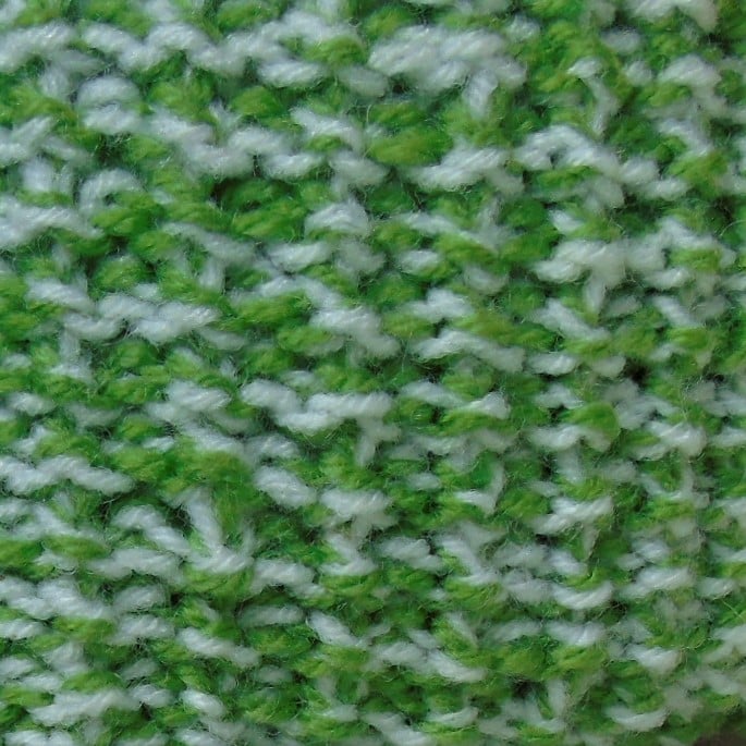 Body is knitted in a double strand of acrylic yarn, one strand white the other green, giving it a lovely textured finish.