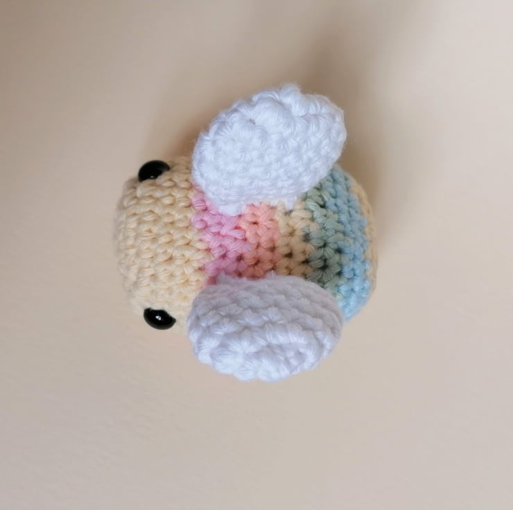 This pastel rainbow bee can be seen buzzing around the wildflowers when it's been raining. Brighten someone's day with a colourful handmade gift.