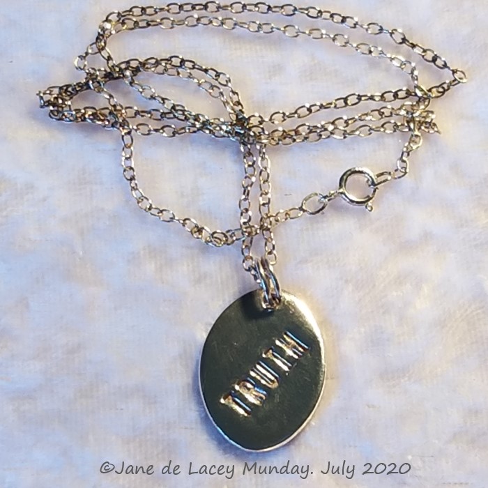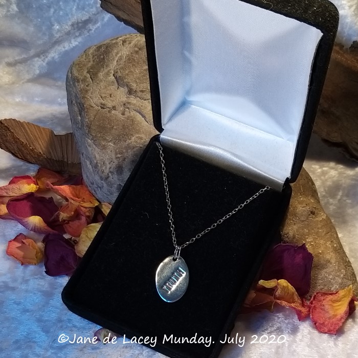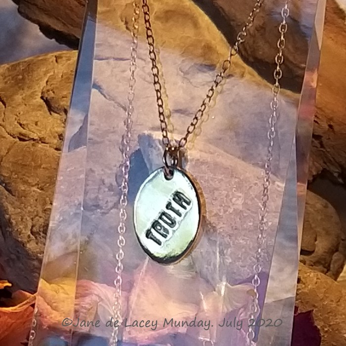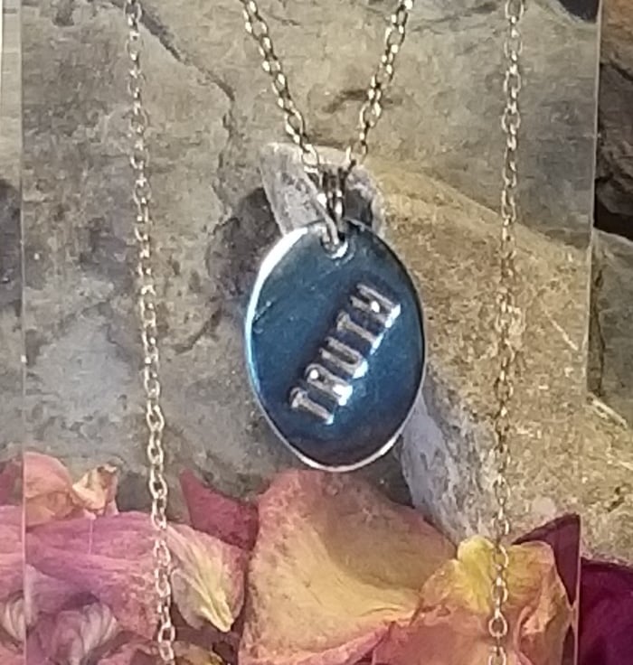 Handcrafted Fine Silver 'Truth' Pendant on 18" Sterling Silver trace chain and split jump ring.
