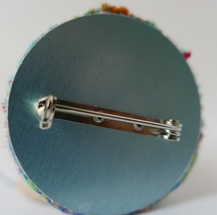 The brooch measures 4cm diameter. Fastening with a safety clasp, keeping the brooch secure when being worn.