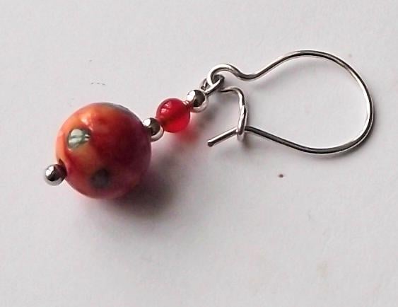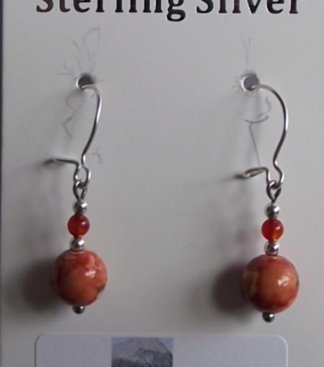 Rich orange/cyan ocean jasper and carnelian earrings with sterling silver handmade kidney shape earwires. Stainless steel bead post for strength. Earring drop 31mm