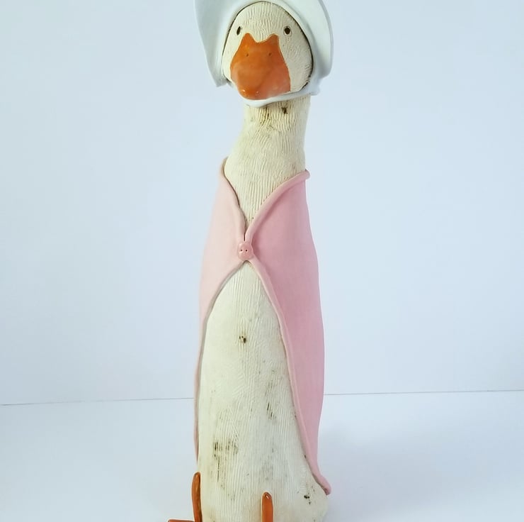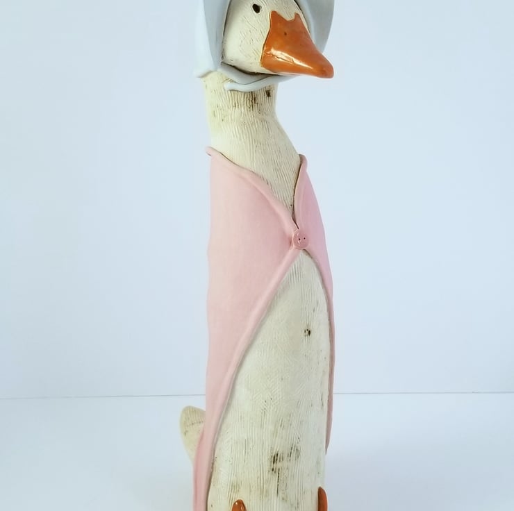 Ceramic animals clay sculpture puddle duck pink summer wrap & bonnet