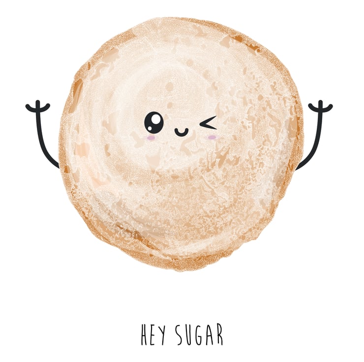 An A6 (folded) anniversary or valentines card made with 350gsm FSC card depicting a hand drawn sugar doughnut with a cheeky cartoon style face. The card is silk coated on the outside to make the image pop and matt on the inside so you can easily write your own message.