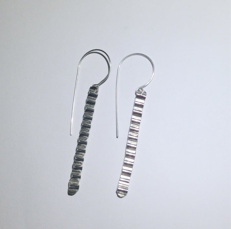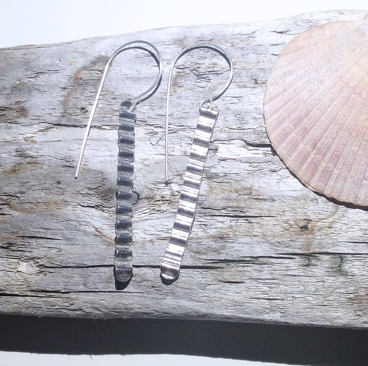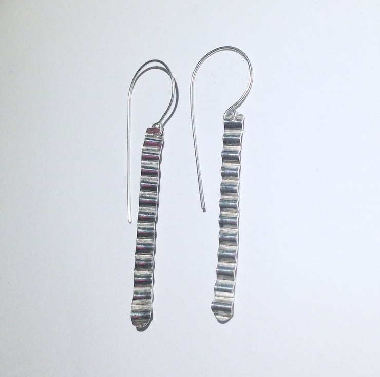 These lovely earrings have been handcrafted from sterling silver which has been repeatedly hammered and then corrugated to create interest.