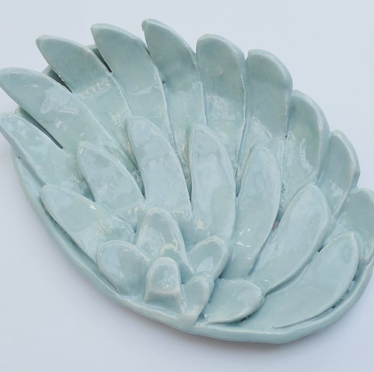 Handmade Ceramic Wing Shape Ornamental Dish - May be used for Keeping Small Items such as Earrings etc.