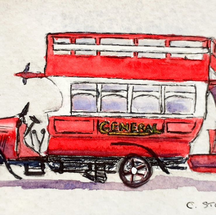 This is an original ACEO watercolour painting of a vintage B type London bus, of the London General Omnibus company. These were among the first mass produced buses, built in large numbers in the early years of the 20th century. Many saw service on the battlefields of World War 1.