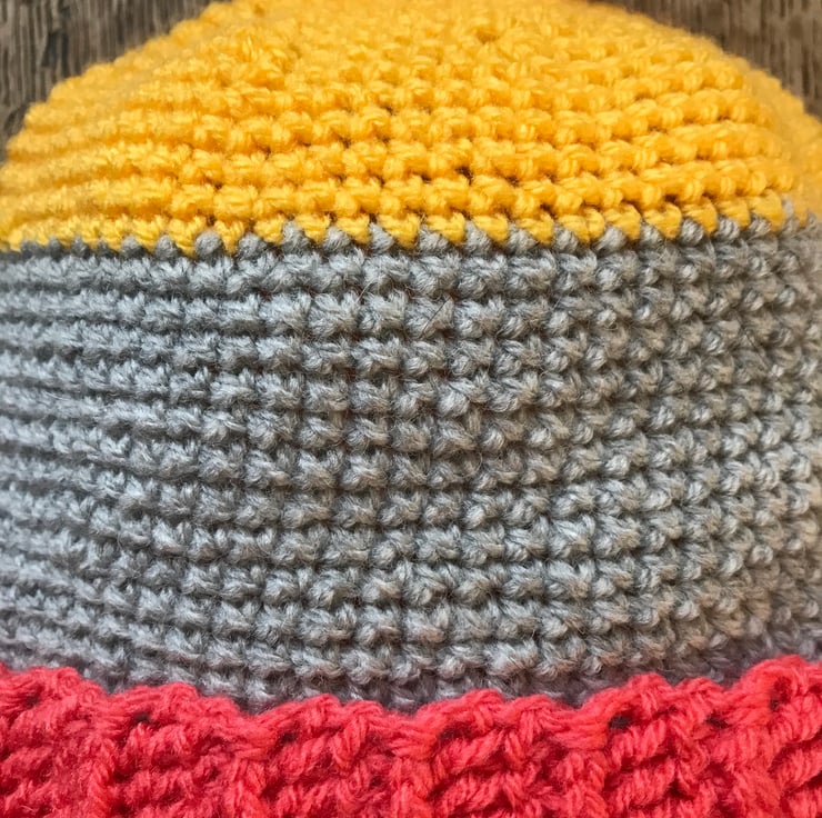 I saw some scarves in a department store a few years ago in this three colour design and loved it. So I thought I would transfer the idea to hats. I love bold colours so enjoyed making this.