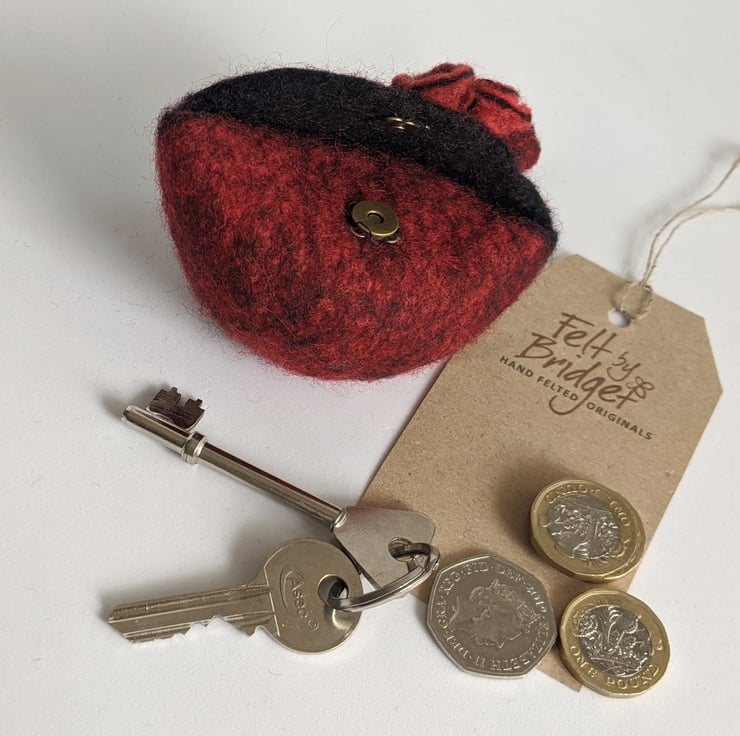 Lovely red organic pod shaped purse, ideal for coins and keys, easy to find by touch in your handbag. Past customers have also used them as a travel pouch for jewellery, or as a handy pouch to keep with their knitting, filled with stitchmarkers.