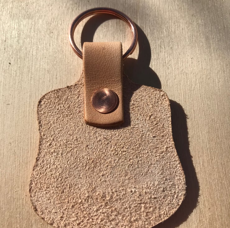 "The Wardown" classic shield shaped key fob is built to last. Quality hide, hand blocked and riveted with a traditional saddler’s copper burr. All hide and hardware sourced from UK suppliers and manufacturers.