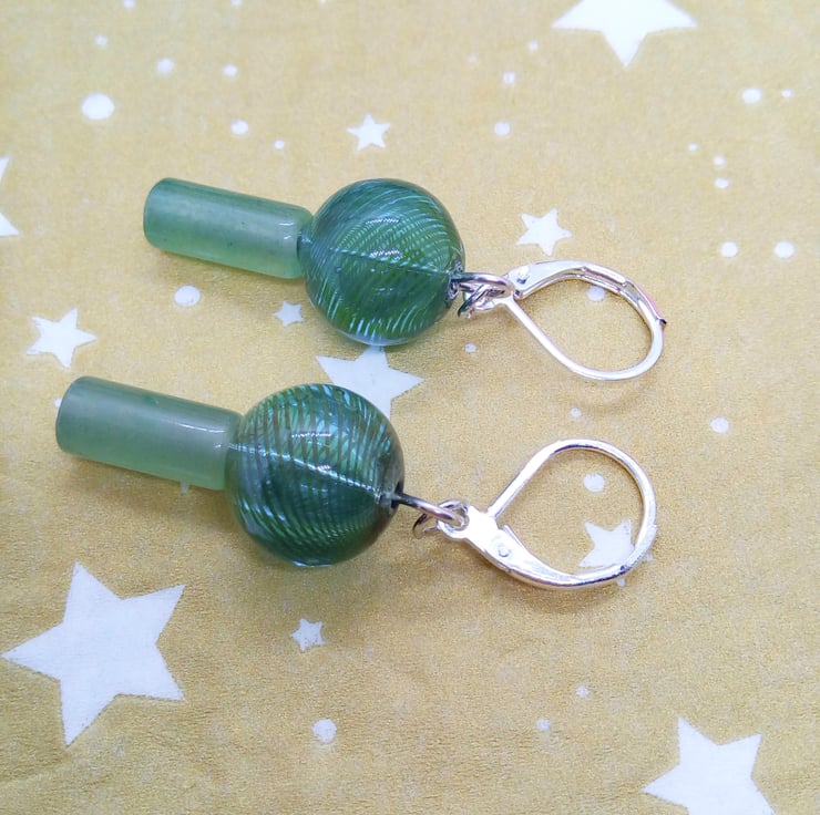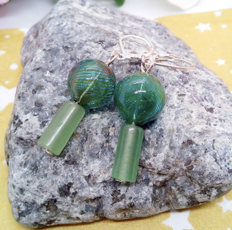 Green Glass Tube Bead and Tumbled Quartz Bead Jewellery Set with Green Puffed Glass Centre, Green Necklace, Green Earrings, Birthday Gift, Gift for Her, Anniversary Gift, Christmas Gift, Stocking Filler