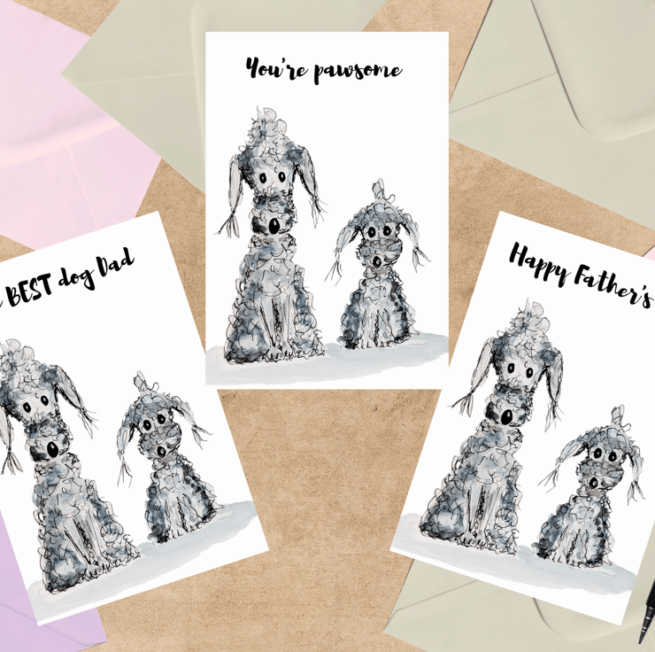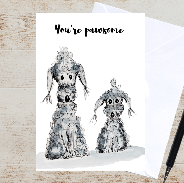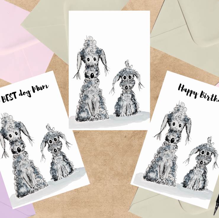 This card is inspired by my own two Bedlington Terrier Dogs, Grace and Summer. I love to draw cute and quirky representations of pets, and I really enjoyed creating these