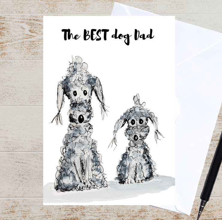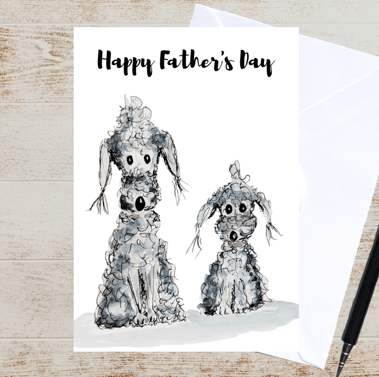 A lovely cute illustration of two Bedlington Terrier dogs, printed onto a lovely white, matt textured card. It is an A6 size, and is printed from one of my original illustrations.