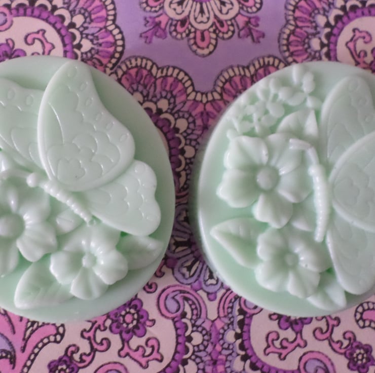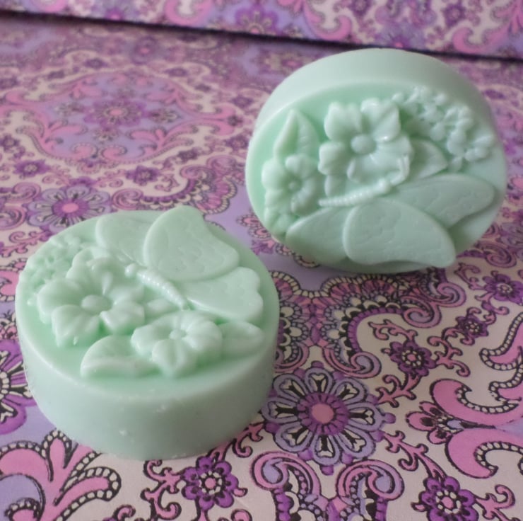 Two gorgeous fresh lime aromatherapy sculpted full size soaps, supplied with pretty lined cotton handmade bag.