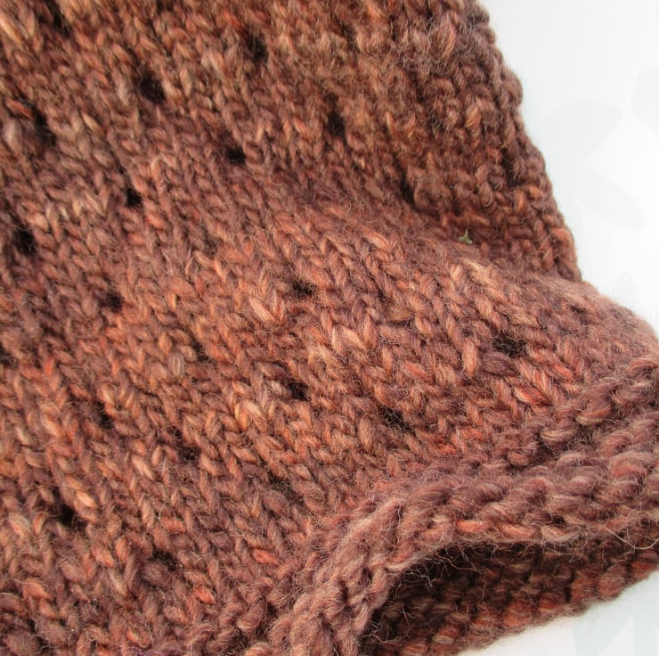 This cowl is a lovely subtle mix of variegated warm browns in a tweedy 70% Wool.