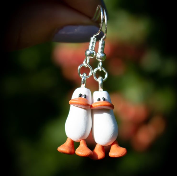 These handmade polymer clay earrings were inspired by my three lovely pet runner ducks Rum, Raisin and Pin!