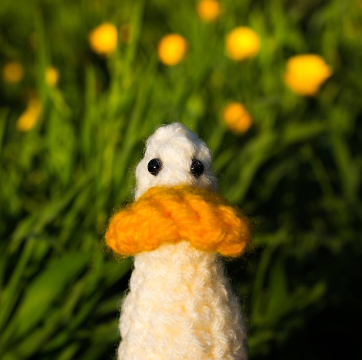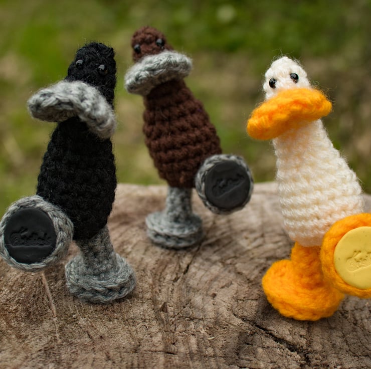 Each duck is individually hand crocheted using acrylic yarn and have beads securely sewn on for their eyes. The duck is finished off with a handmade stamped polymer clay button on its foot featuring the Origiwools logo. Each duck comes in its own individual gift box made from 100% recycled materials.