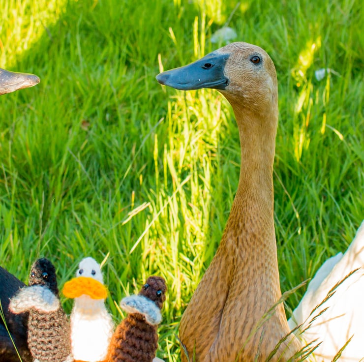 Raisin (black) is the most sensible of the three ducks and is the leader of the gang! My real runner ducks are very loud and very cheeky, so you are better off with these little crocheted versions who won't make a peep.