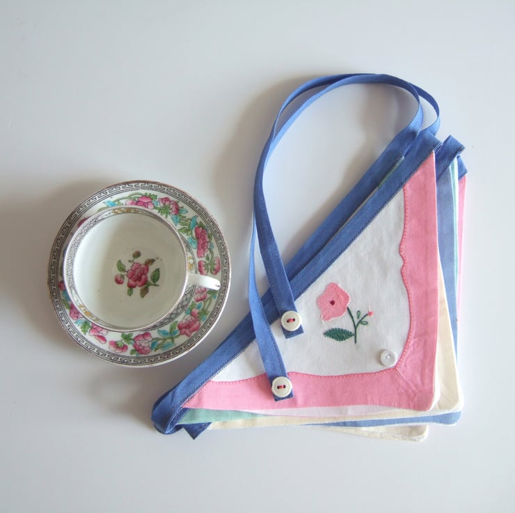 These little napkins were just too dainty to make into purses, but too good not to use. I have managed to make a pretty strip of original bunting instead!