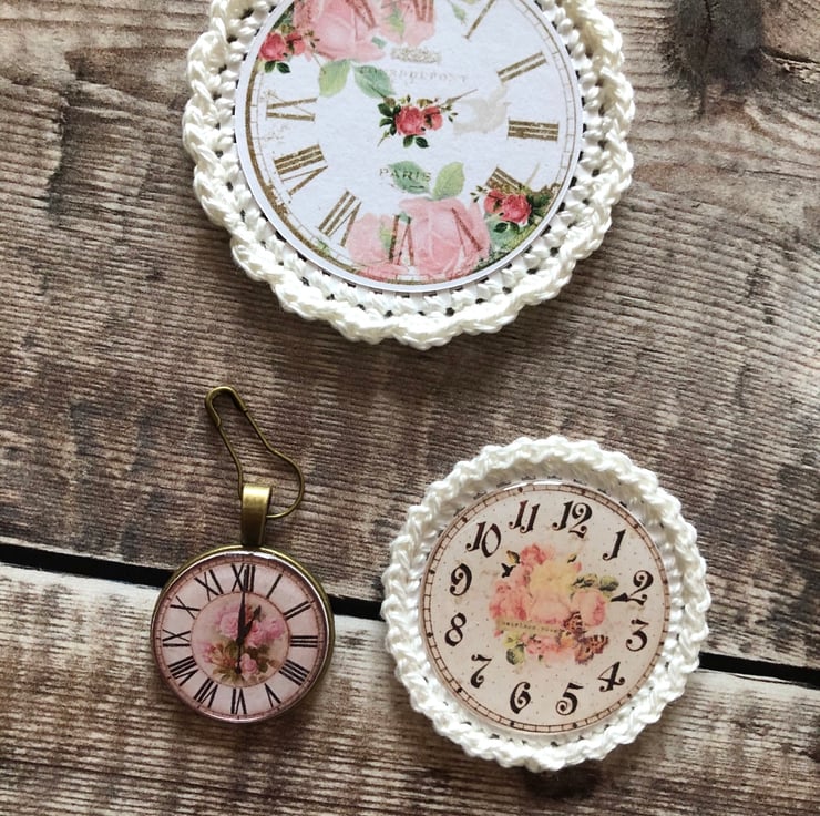 9 x bird ephemera pieces in little tiny glassine bag & 3 x clock ephemera pieces