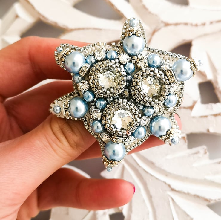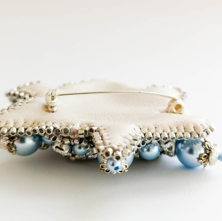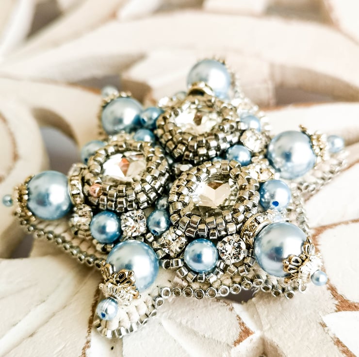 Each piece of my accessories was made with passion and hard work. I used quality materials, such as Swarovski crystals, pearls and Toho beads. All components are sewn in with fishing wire to ensure the proper hold of the beads. To create one brooch it takes in average from 7 to 11 hours.
