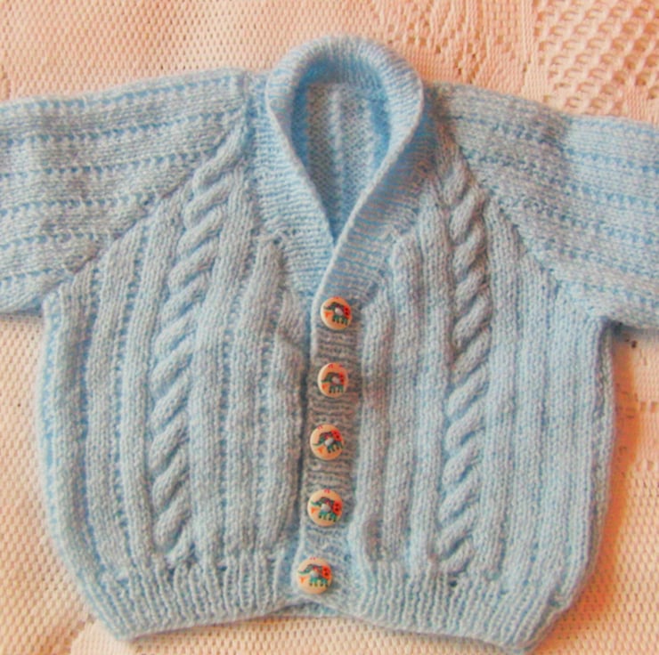 Hand Knitted Cabled Cardigan with a Shawl Collar for a Baby, Baby Shower Gift, Hand Knitted Cardigan, Knitted Baby Clothes, New Baby Gift