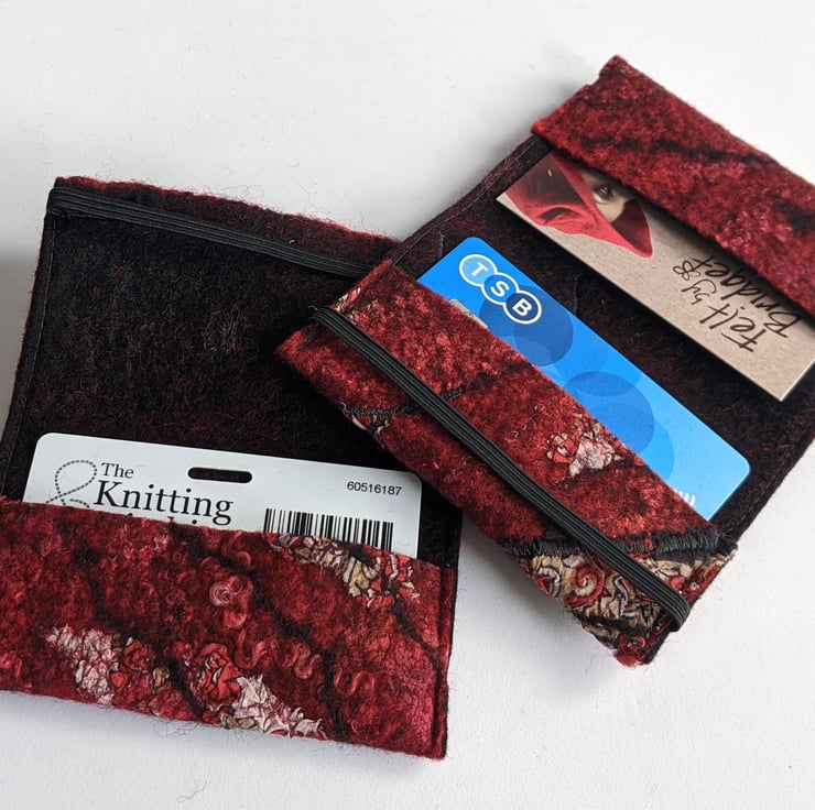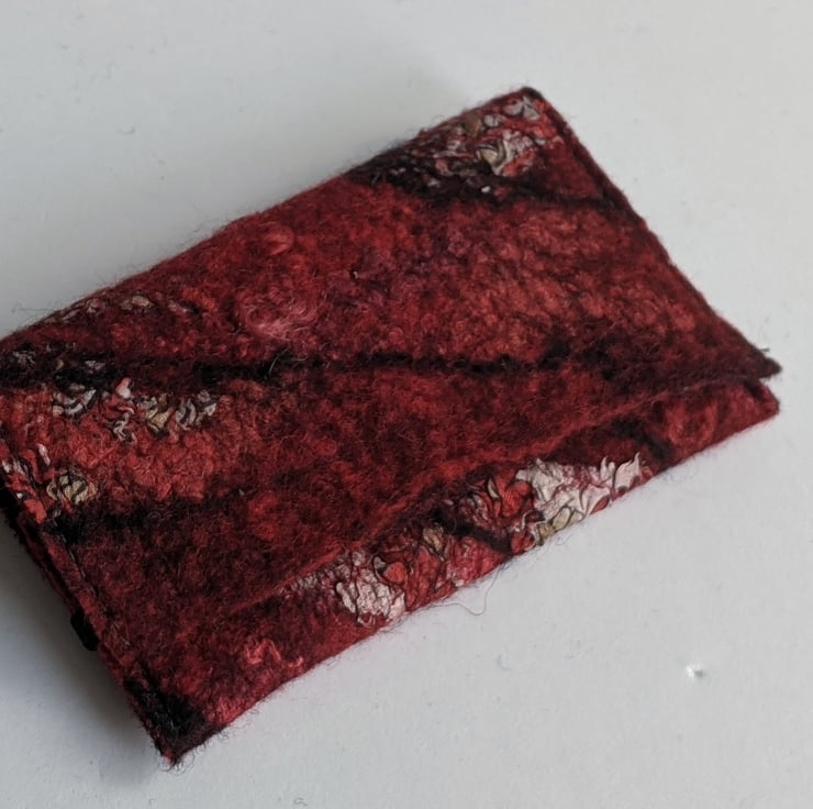 I make these in batches from one (unrepeatable) sheet of handmade felt, so each wallet will vary slightly.