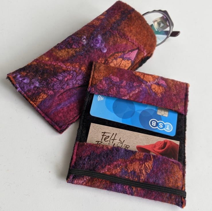 I make these in batches from one (unrepeatable) sheet of handmade felt, so each wallet will vary slightly.