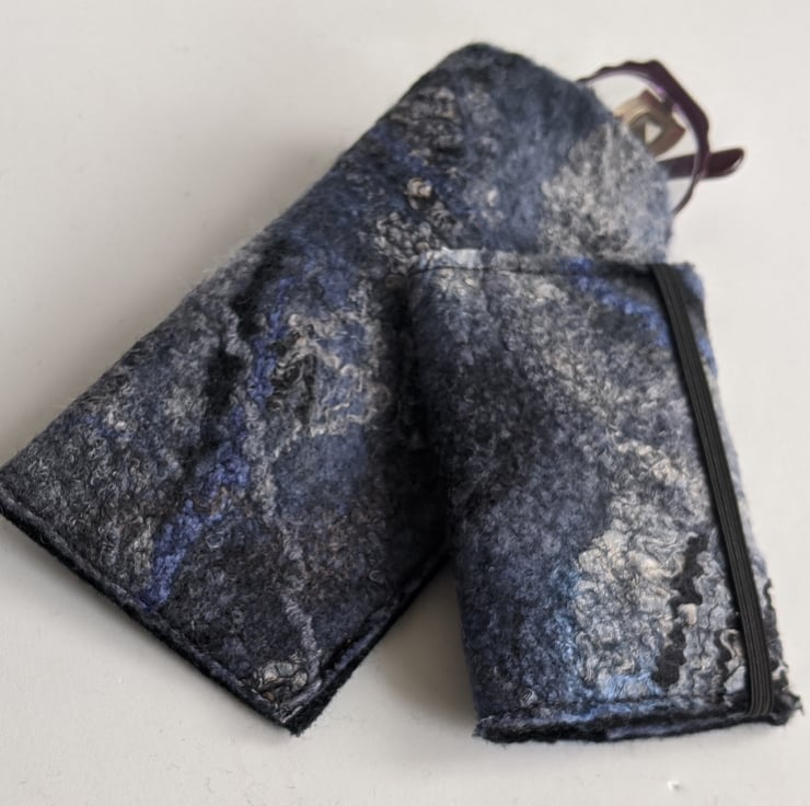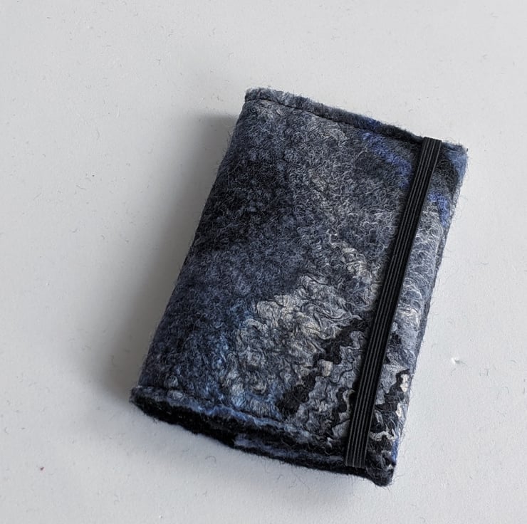 I make these in batches from one (unrepeatable) sheet of handmade felt, so each wallet will vary slightly.