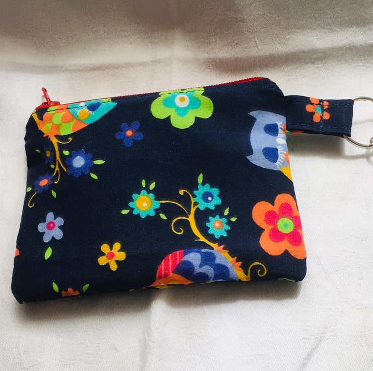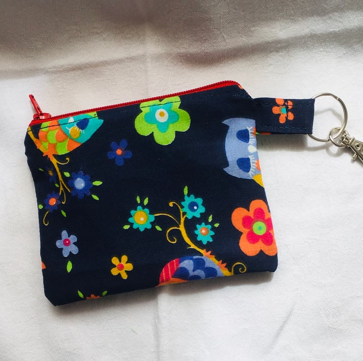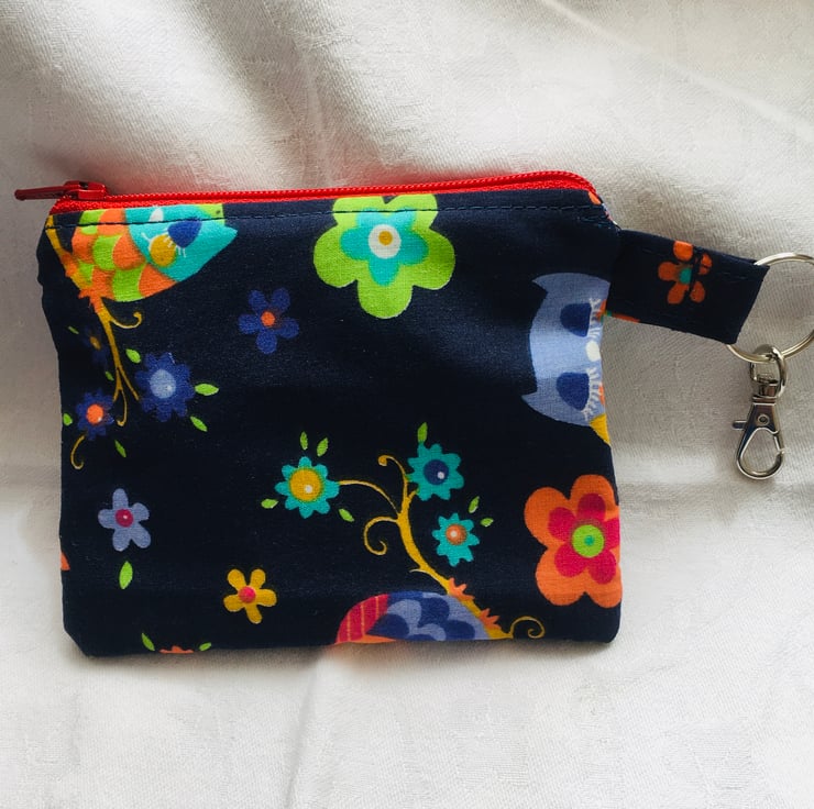 Here's a cute small coin zip purse, with clip. A great addition to your accessories. This small zip purse is great for holding your loose change, or your cards and clipping inside your bag. Another use to clip onto belt loop to keep your keys in, when out walking or to find easily in your bag. A great small zip purse with the addition of a clip for added security.