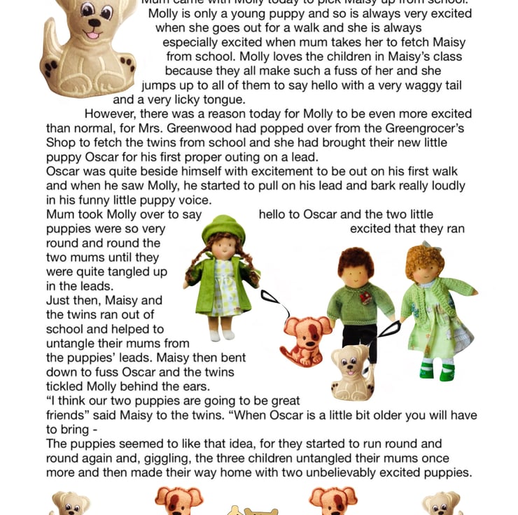 There are other children in Maisy’s class at school - Violet, Billy with his pet rabbit, Amber, Tilly, Rosie and her kittens, Amelia, Ruby, Marigold, Bobby with Max the dog, and the twins Oliver and Olivia, who have a puppy called Oscar. The dolls are all 26cm tall and baby Daisy is 16cm. Maisy and Mo love nothing more than having adventures with their friends. You can read about their adventures on my Facebook and Instagram pages - Maisy Muffin Rag Dolls and on my Mulberry Green Pinterest boards.