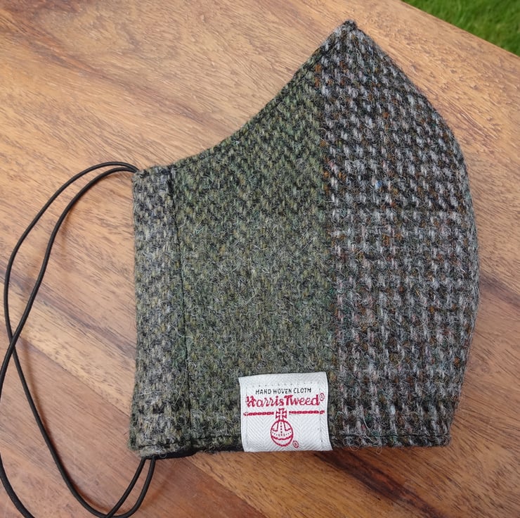 Hand made Harris Tweed face cover in size Large which is suitable for adult male.