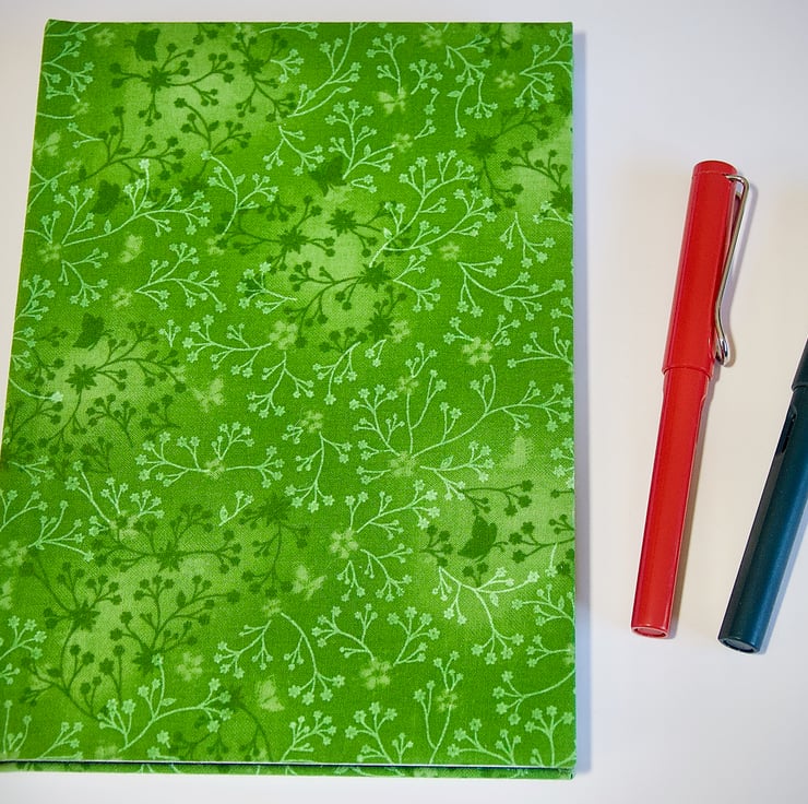 A5 Hardback Lined Notebook with full cloth green flower cover