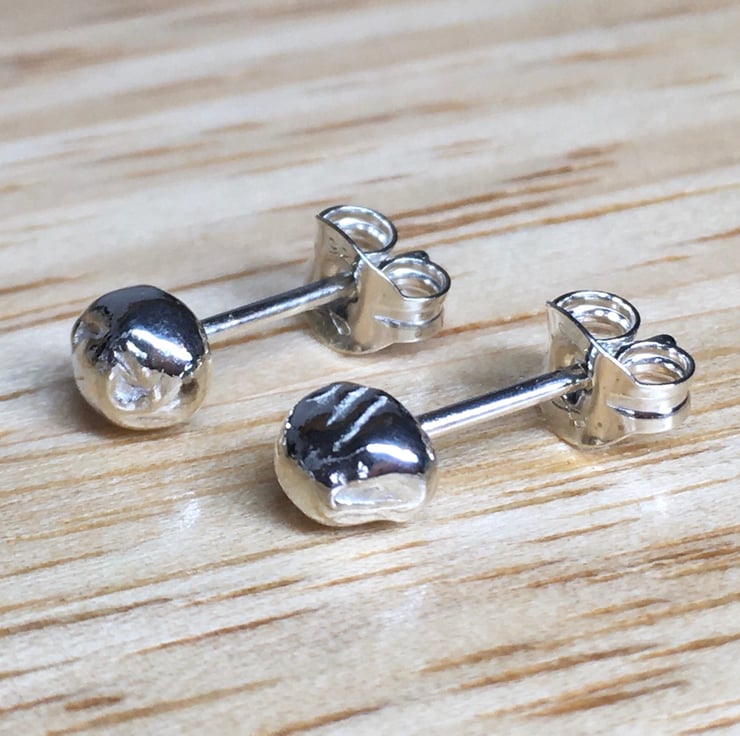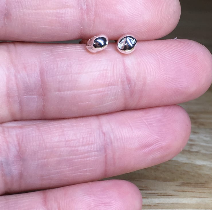 I have plenty of scrap silver, off cuts and pieces just too small to create with so I decided to melt it down and create the tiny stud earrings! Beautiful swirl shapes are made in the silver when it’s melted making each stud unique.