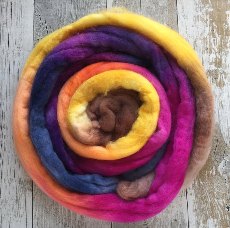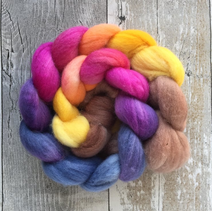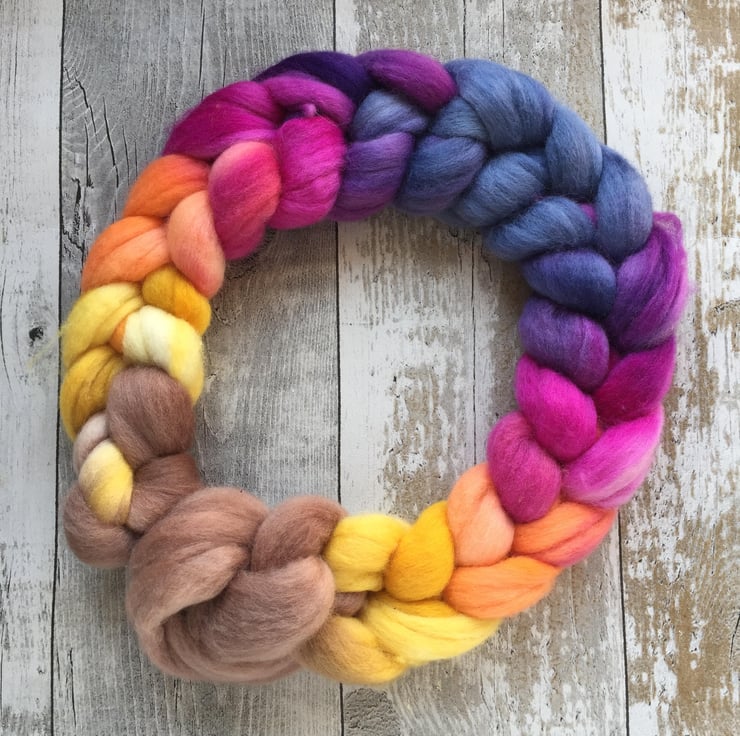 Approximately 100g hand dyed by me in a mirror gradient in my forever autumn colour way.