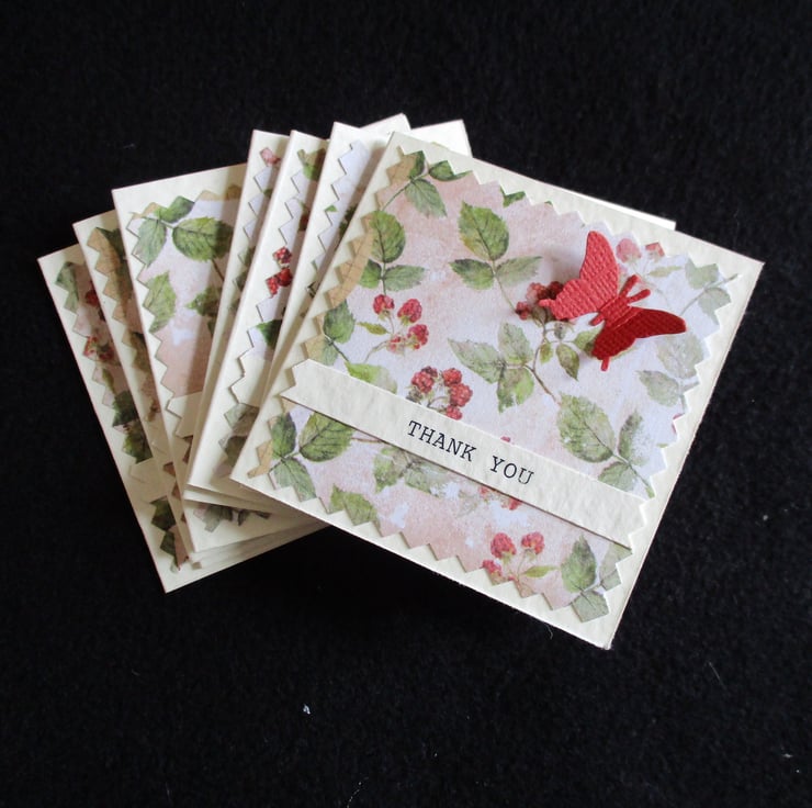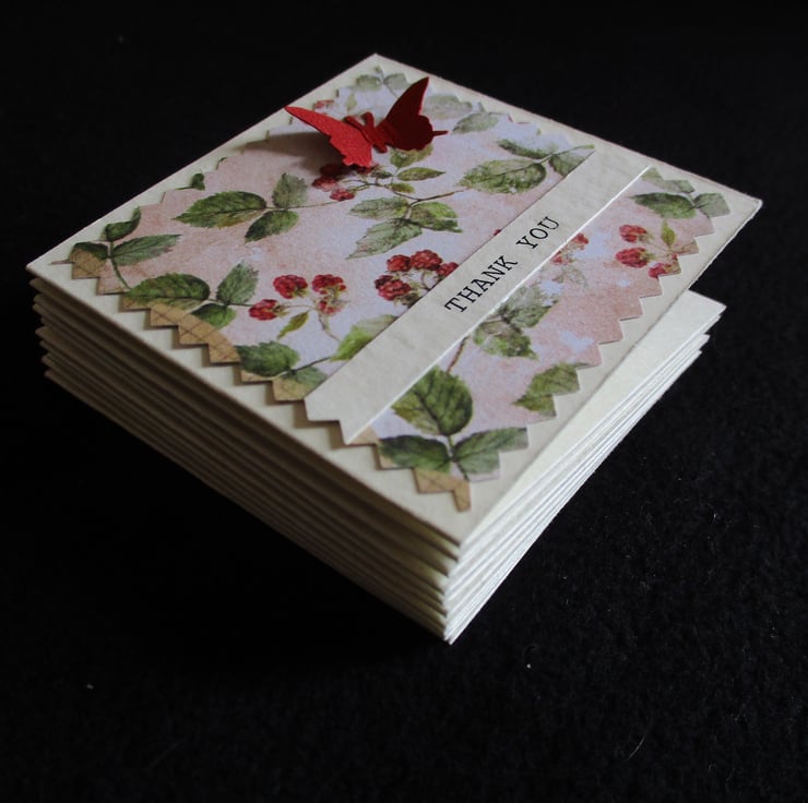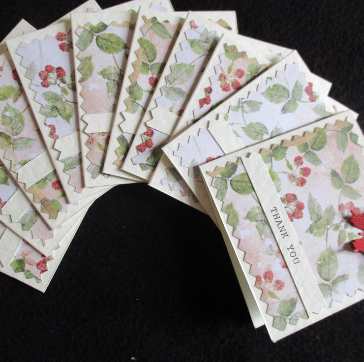 Set of 10 mini thank you cards, created from ivory hammered card stock,