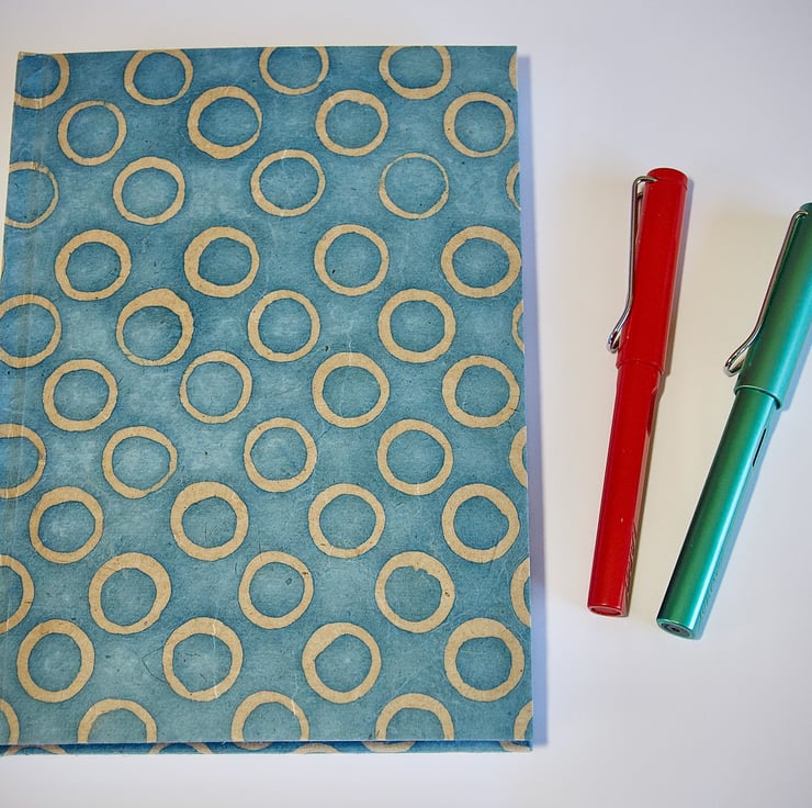 A5 Hardback Music Manuscript Notebook with blue circle handmade paper cover