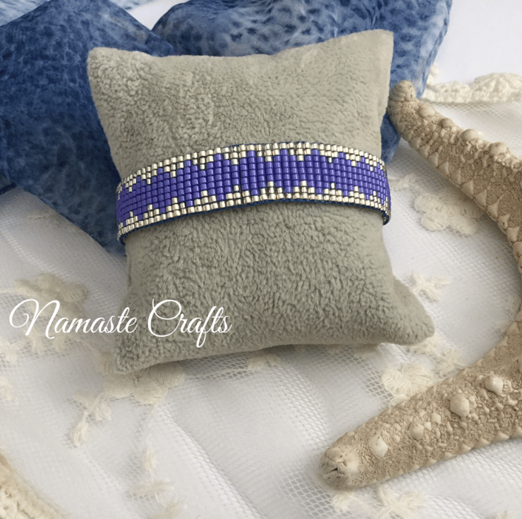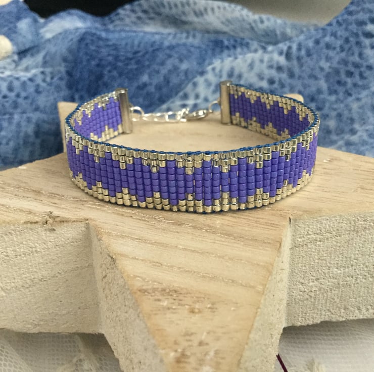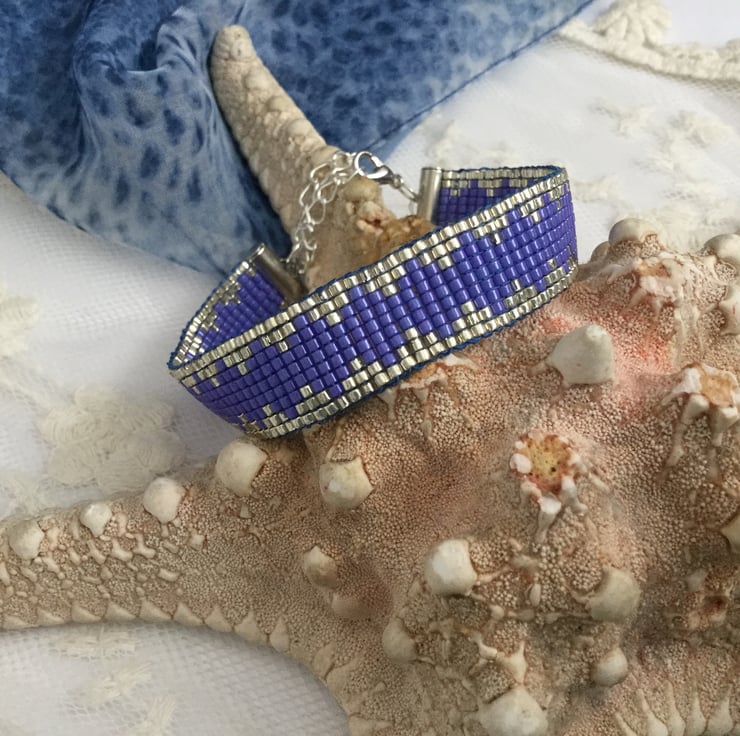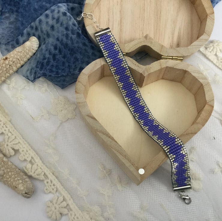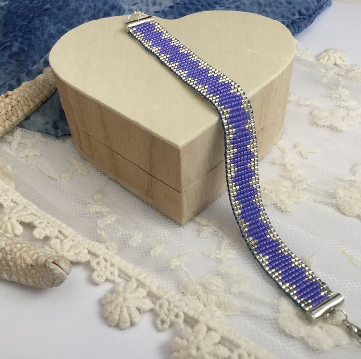 I have created this gorgeous original elegant glass beaded loom friendship bracelet in a lovely blue /purple colour and silver.
