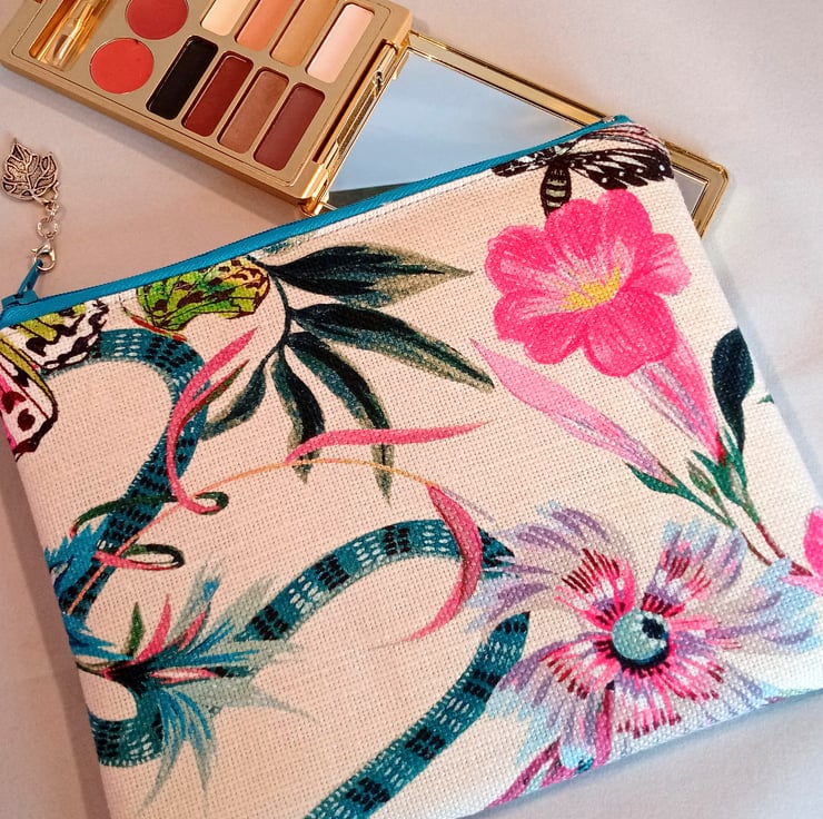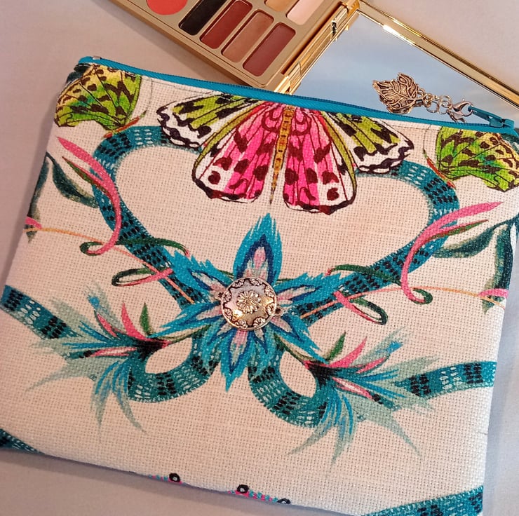 This fabric from a sample book makes a gorgeous 15x19cm make up bag which is wadded and lined in pale grey satin.