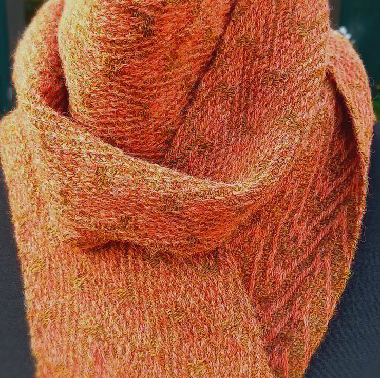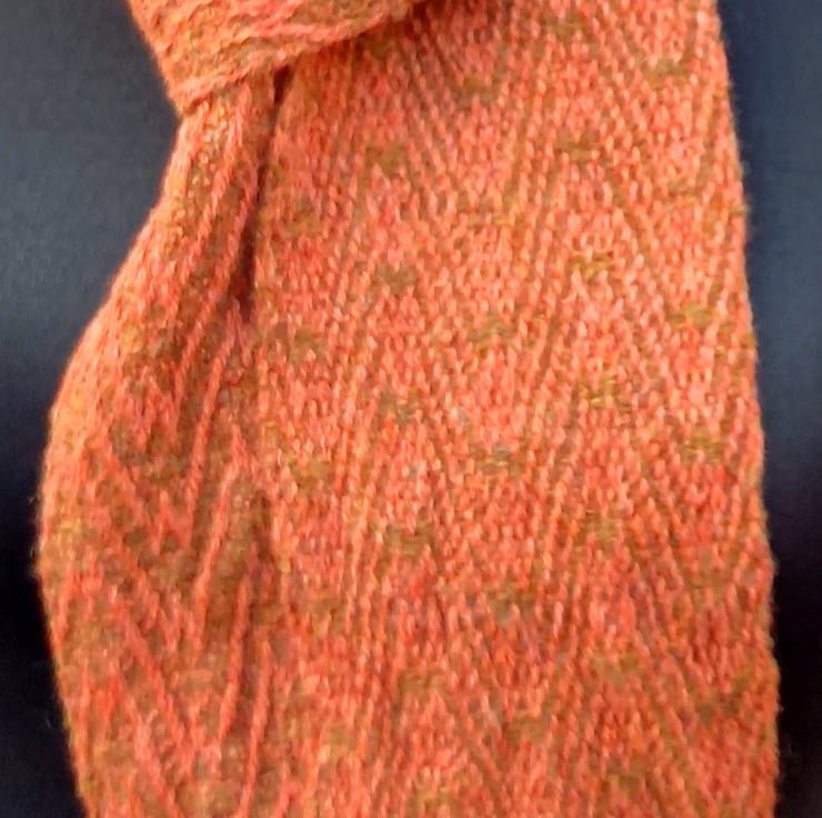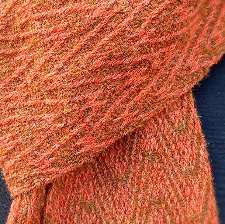 I was given a range of different coloured shetland wools and have been trying out different patterns. I really like the combination of this point twill in the two different colours which gives it a really autumn feel.
